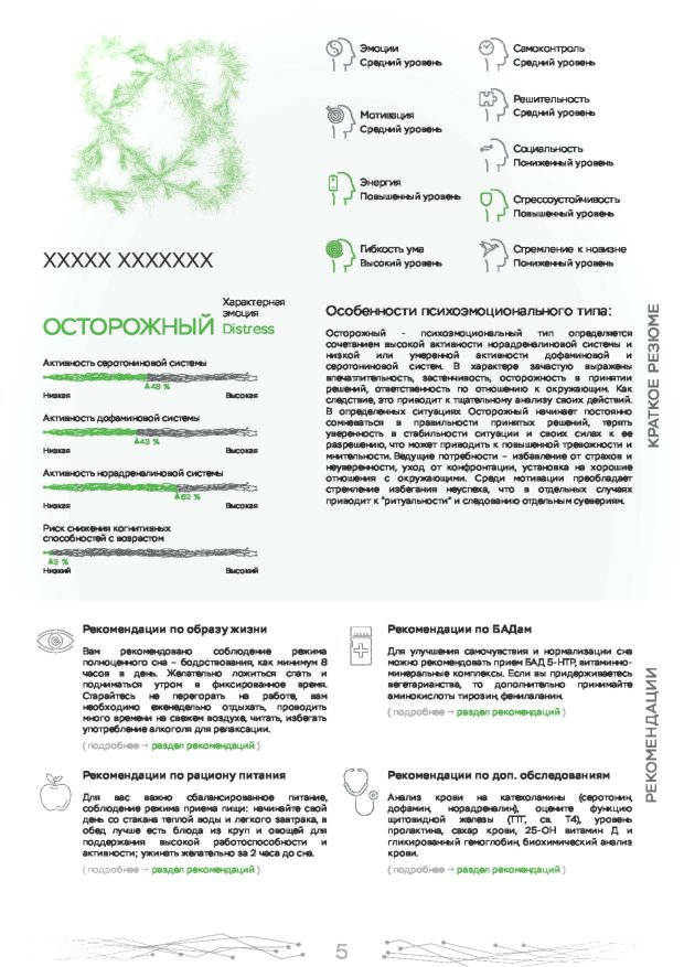 Этот ДНК анализ показывает влияние наиболее важных 10 генов на психическое и эмоциональное состояние. Именно они регулируют выработку гормонов, работу нейромедиаторов. Используйте знания о природных свойствах своего организма для борьбы со стрессом, повышения работоспособности и общего тонуса. Каждый человек индивидуален, поэтому мы рекомендуем пройти наш генетический нейро тест в Кирсе.